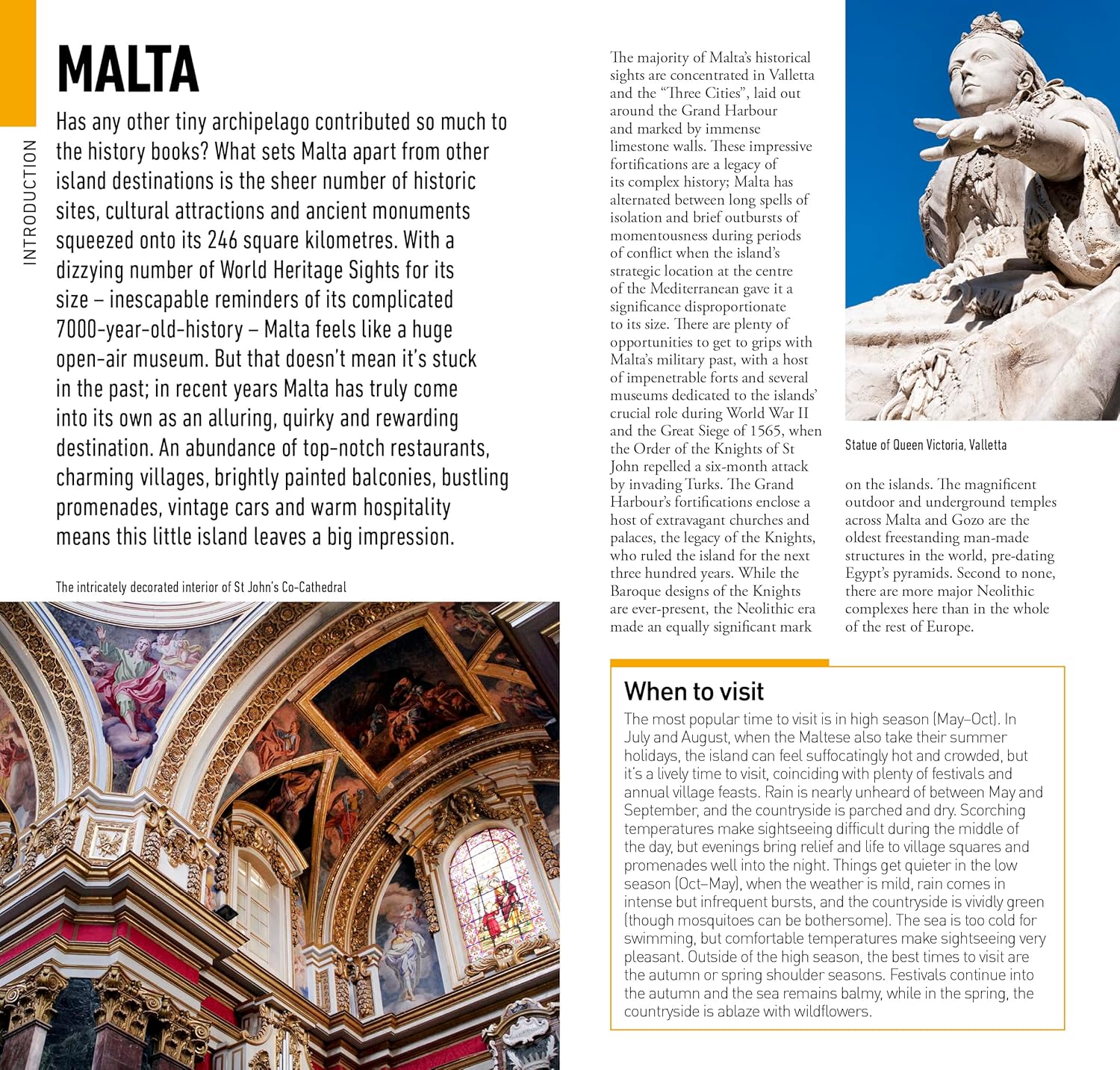 This Malta & Gozo guidebook covers: Valletta, The Three Cities, Sliema and St Julian's, Mdina and Rabat, Central Malta, The north, The south, Gozo, Comino.