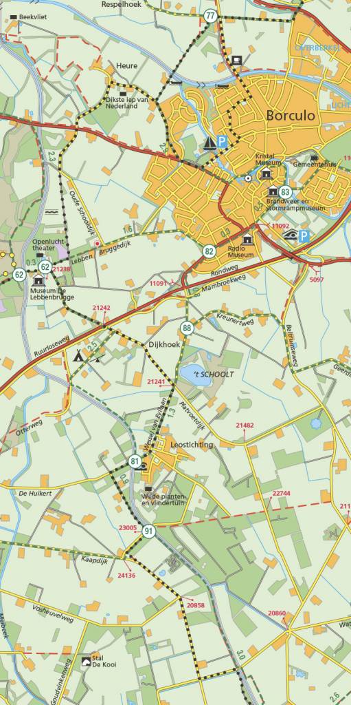 Gedetailleerde kaart met daarop alle straten, bospaden en fietspaden. De kaart bevat vele wandelroutes van onder andere natuurmonumenten en staatsbosbeheer, waaronder de bekende paaltjesroutes. Ook alle andere toeristisch belangrijke punten staan nadrukkelijk weergegeven: campings, restaurants, zwembaden .. noem maar op! Het gebied is zo uitgesneden dat de titel prima de lading dekt: de ideale wandelkaart en fietskaart voor de vakantie.