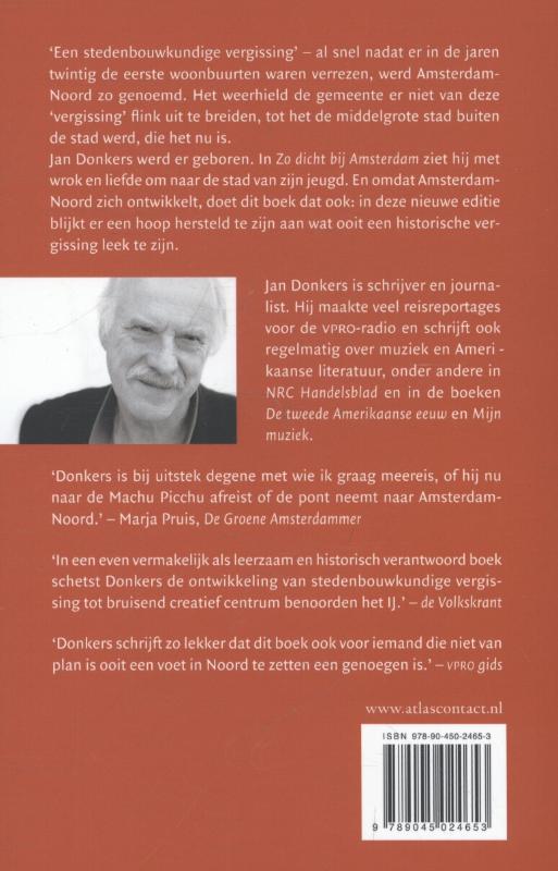Jan Donkers werd er geboren. In Zo dicht bij Amsterdam ziet hij met wrok en liefde om naar de stad van zijn jeugd. En omdat AmsterdamNoord zich ontwikkelt, doet dit boek zich ook: in deze nieuwe editie blijkt er een hoop hersteld te zijn aan aan een gebied met zo n moeizame geschiedenis.