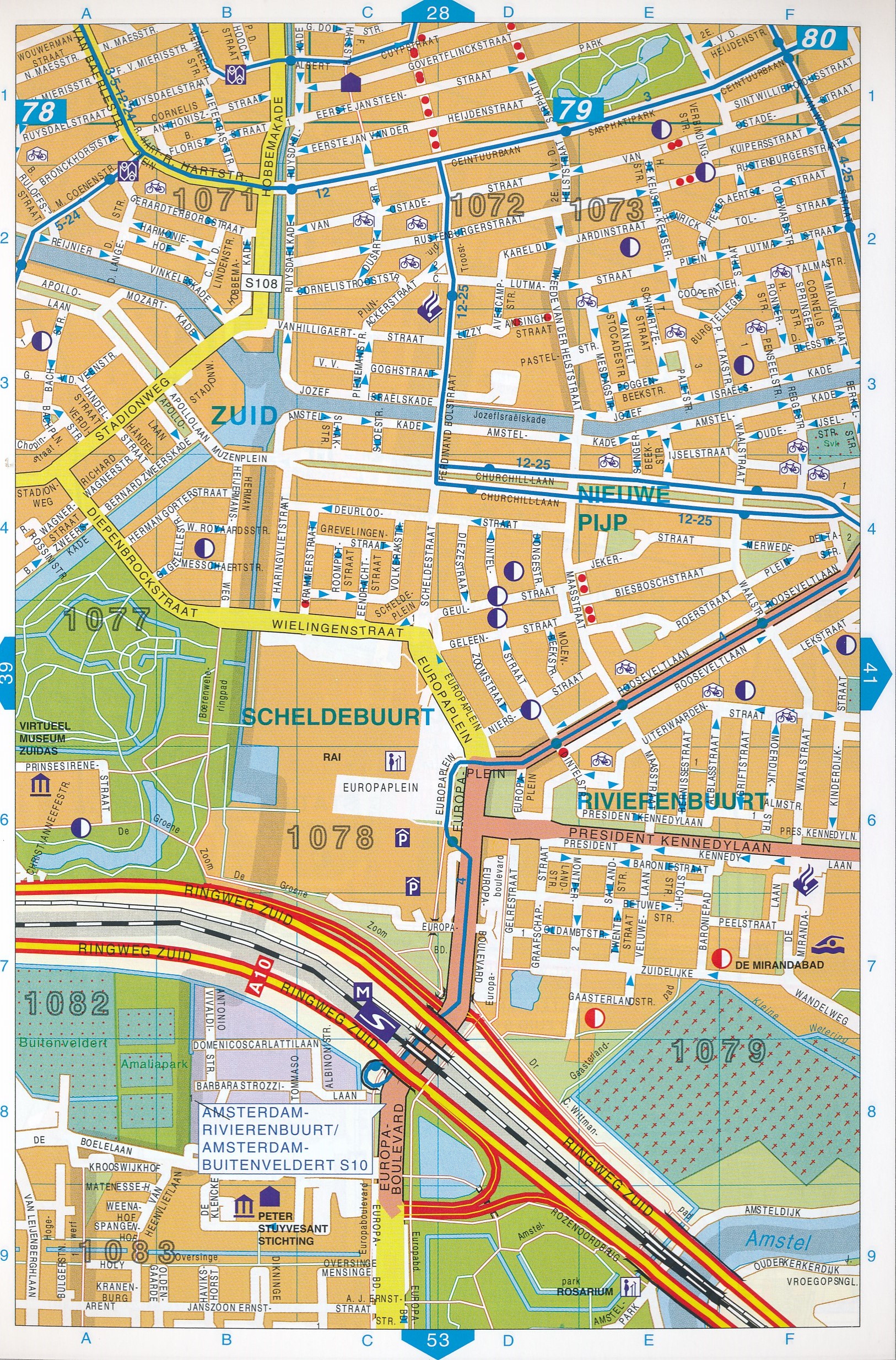 Falk stratengids Amsterdam en omgeving (Amstelveen en Schiphol) easy city met ringband inclusief tramlijnen.