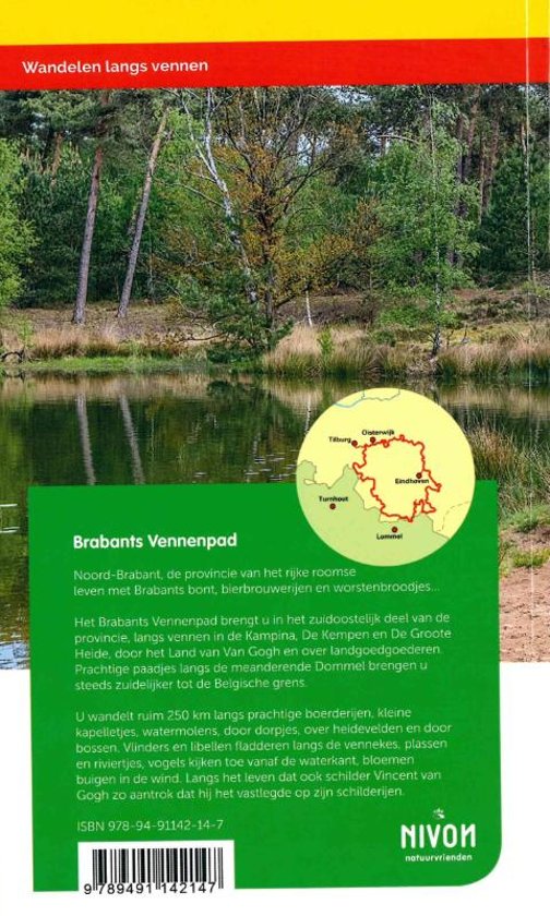 Brabant Vennenpad Noord-Brabant, de provincie van het rijke roomse leven met Brabants bont, bierbrouwerijen en worstenbroodjes… Het Brabants Vennenpad brengt u in het zuidoostelijk deel van de provincie, langs vennen in de Kampina, De Kempen en De Groote Heide, door het Land van Van Gogh en over landgoederen. Prachtige paadjes langs de meanderende Dommel brengen u steeds zuidelijker tot de Belgische grens.