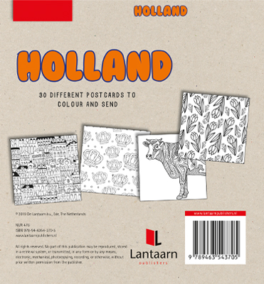 Een collectie van dertig verschillende kaarten om te versturen die kunnen worden ingekleurd. Op de voorkant staat een typisch Nederlandse afbeelding en de achterkant van de kaart ziet er als een standaard postkaart uit: om te kunnen versturen met de post. De kaarten zijn makkelijk uitscheurbaar, maar u kunt ze natuurlijk ook laten zitten en bewaren.