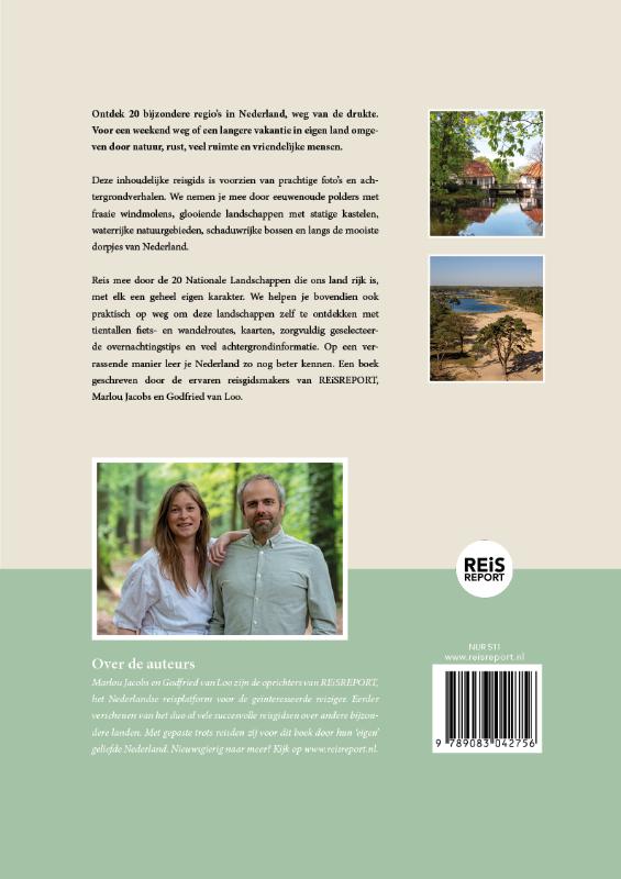 Reis mee door de 20 Nationale Landschappen die ons land rijk is, met elk een geheel eigen karakter. We helpen je bovendien ook praktisch op weg om deze landschappen zelf te ontdekken met tientallen fiets- en wandelroutes, kaarten, zorgvuldig geselecteerde overnachtingstips en veel achtergrondinformatie. Op een verrassende manier leer je Nederland zo nog beter kennen. Een boek geschreven door de ervaren reisgidsmakers van REiSREPORT, Marlou Jacobs en Godfried van Loo.