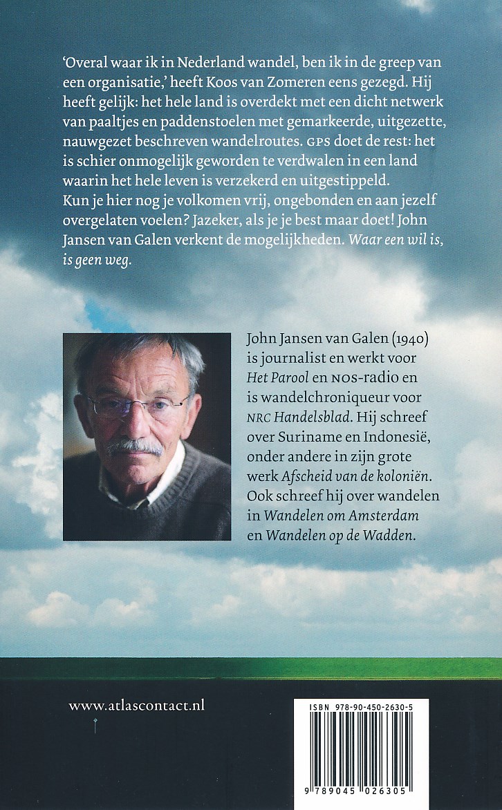 'Overal waar ik in Nederland wandel, ben ik in de greep van een organisatie,' heeft Koos van Zomeren eens gezegd. Hij heeft gelijk: het hele land is overdekt met een dicht netwerk van paaltjes en paddenstoelen met gemarkeerde, uitgezette, nauwgezet beschreven wandelroutes. GPS doet de rest: het is schier onmogelijk geworden te verdwalen in een land waarin het hele leven is verzekerd en uitgestippeld.