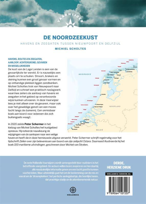 Vaarwijzer De Noordzeekust – Havens en zeegaten tussen Nieuwpoort en Delfzijl HAVENS, ROUTES EN ZEEGATEN, AANLOOP, ACHTERGROND, GEVAREN EN MOGELIJKHEDEN De kust van de Lage Landen is een van de gevaarlijkste ter wereld. Er is nauwelijks een plaats om te schuilen. Stroom, brekers en deining kunnen een groot gevaar vormen en op onhandige plekken liggen zandbanken. Michiel Scholtes trok van Nieuwpoort naar Delfzijl en schreef een praktisch naslagwerk waarmee zeilers de aanloop van havens en zeegaten in het gebied op verantwoorde wijze kunnen uitvoeren. In deze Vaarwijzer lees je niet alleen over de gevaren, maar ook over het geweldige genot van een mooie tocht langs de duinenrij. Een onmisbaar boek aan boord voor iedereen die zich buitengaats waagt. In 2020 zeilde Peter Schermer in het kielzog van Michiel Scholtes het kustgebied opnieuw. Hij noteerde nauwkeurig de wijzigingen van de aanlopen naar een veilige haven en heeft die in deze hernieuwde uitgave verwerkt. Peter Schermer schrijft regelmatig voor het tijdschrift Zeilen over zijn belevenissen aan boord van zijn zeiljacht Ostara. Daarnaast illustreerde hij het boek 100 maritieme uitvindingen, geschreven door Michiel van Straten. De serie Hollandia Vaarwijzers wordt samengesteld door routiniers in het betreffende vaargebied. De auteurs willen lezers inspireren en hen daarbij alle noodzakelijke informatie geven om een tocht goed te kunnen voorbereiden. Maar uiteindelijk gaat het om de bestemming van de reis en vooral om de ‘droomplekken’: het perfecte aanlegplaatsje, die heerlijke haven, dat prachtige stadje en de adembenemende natuur. Derde, herziene druk