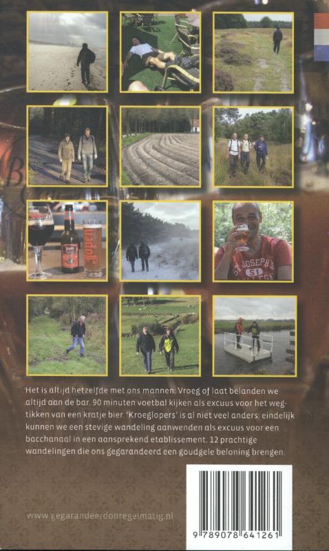 Naar de kroeg lopen, maar dan via een flinke omweg. Een wandelgids met stevige routes en een gezellige kroeg onderweg, halverwege of aan het eind. Niet teveel poespas en niet al te complexe routes. Gewoon een goed leesbare kaart en een robuuste routebeschrijving. Dé tegenhanger van de talrijke op vrouwen georiënteerde wandelgidsjes, met accent op theetuinen en leuke adresjes. 'Het is altijd hetzelfde met ons mannen: Vroeg of laat belanden we altijd aan de bar. Negentig minuten voetbal kijken als excuus voor het wegtikken van een kratje bier. 'Kroeglopers' is al niet veel anders: eindelijk kunnen we een stevige wandeling aanwenden als excuus voor een bacchanaal in een aansprekend etablisement. 12 prachtige wandelingen die ons gegarandeerd een goudgele beloning brengen.' Uitgeverij Gegarandeerd Onregelmatig lanceert met 'Kroeglopers' de eerste echte Nederlandse wandelgids die zich op mannen richt!