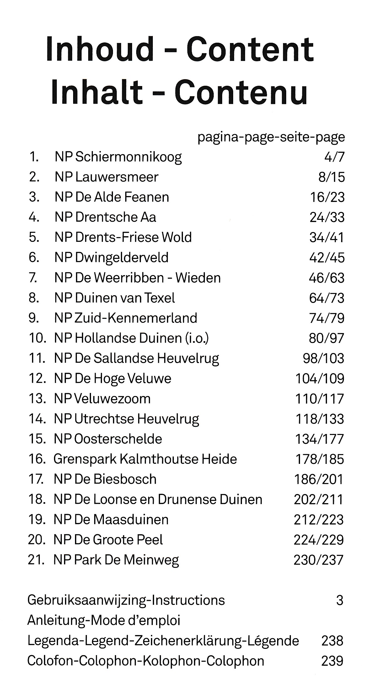 Inbegrepen: Nationaal Park De Alde Feanen Nationaal Park De Biesbosch Nationaal Park Drents-Friese Wold Nationaal Park Drentsche Aa Nationaal Park Duinen van Texel Nationaal Park Dwingelderveld Nationaal Park De Groote Peel Nationaal Park De Hoge Veluwe Nationaal Park Hollandse Duinen (i.o.) Nationaal Park Lauwersmeer Nationaal Park De Loonse en Drunense Duinen Nationaal Park De Maasduinen Nationaal Park De Meinweg Nationaal Park Nieuw Land Nationaal Park Oosterschelde Nationaal Park De Sallandse Heuvelrug Nationaal Park Schiermonnikoog Nationaal Park Utrechtse Heuvelrug Nationaal Park Weerribben - Wieden Grenspark Kalmthoutseheide Nationaal Park Zuid-Kennemerland