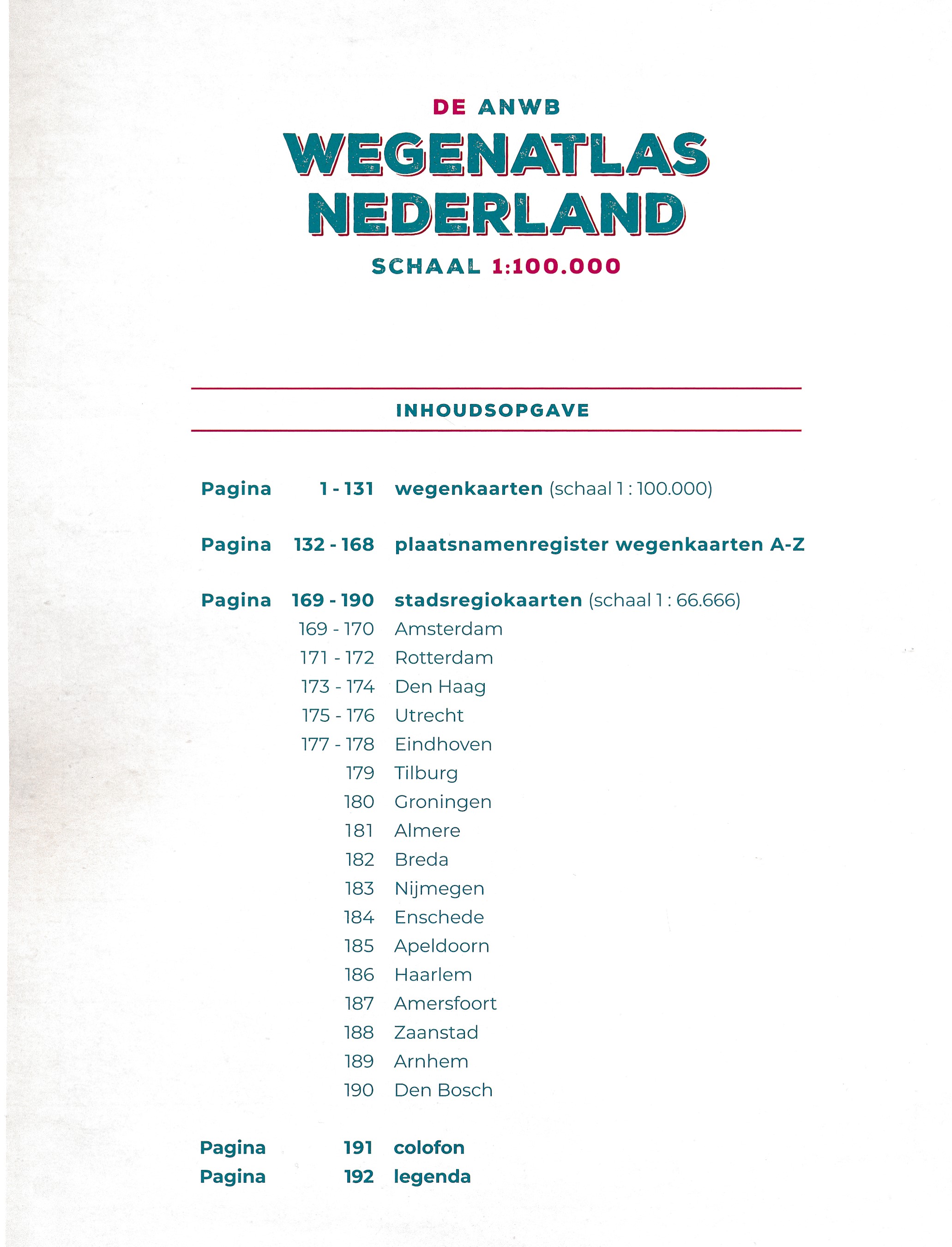 In deze nieuwe editie van de ANWB Wegenatlas Nederland (ringband)is het kaartwerk geactualiseerd. Met een schaal van 1:100.000 (1 cm = 1 km) voldoet de atlas aan de wensen van veel kaartgebruikers.