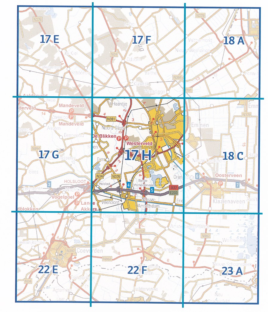 De meest gedetailleerde kaart die via de verkoopkanalen verkrijgbaar is. Gemaakt door de Nederlandse Topografische dienst bevat deze kaart alle topografische elementen van het landschap en geeft daarmee een nauwkeurig beeld van het terrein. De meeste kaarten hebben een kaartbeeld dat overeenkomt met 12,5 x 10 kilometer in werkelijkheid.