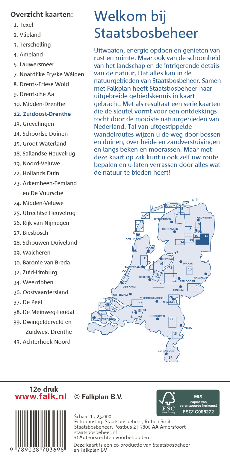 - Wandelkaart 12 Staatsbosbeheer Zuidoost Drenthe | Falk