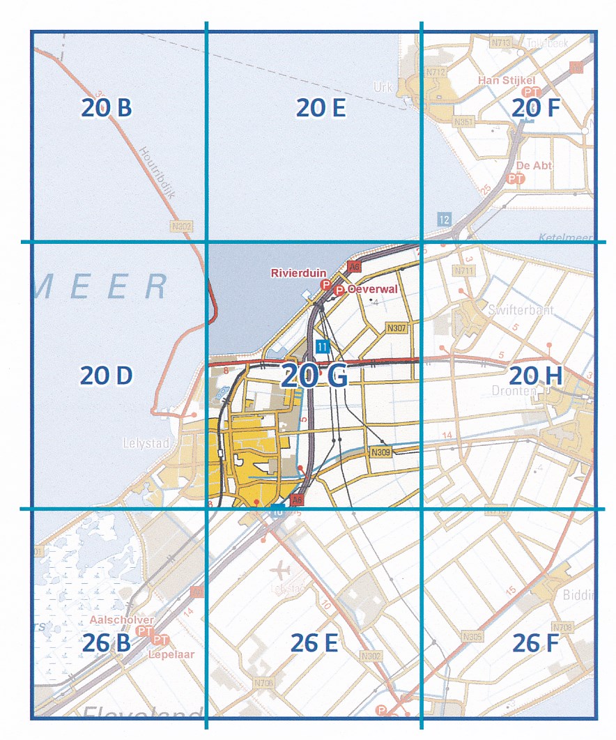De meest gedetailleerde kaart die via de verkoopkanalen verkrijgbaar is. Gemaakt door de Nederlandse Topografische dienst bevat deze kaart alle topografische elementen van het landschap en geeft daarmee een nauwkeurig beeld van het terrein. De meeste kaarten hebben een kaartbeeld dat overeenkomt met 12,5 x 10 kilometer in werkelijkheid.