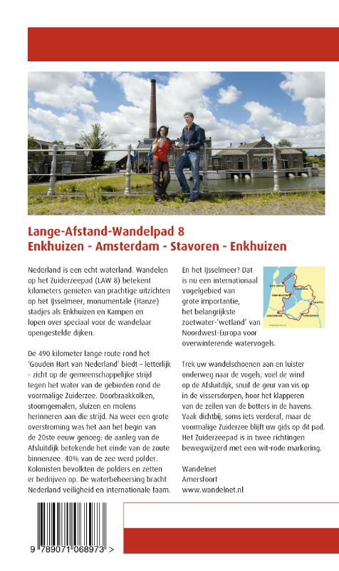 Trek uw wandelschoenen aan en luister onderweg naar de vogels, voel de wind op de Afsluitdijk, snuif de geur van vis op in de vissersdorpen, hoor het klapperen van de zeilen van de botters in de havens... Vaak dichtbij, soms iets verderaf, maar de voormalige Zuiderzee blijft uw gids op dit pad.
