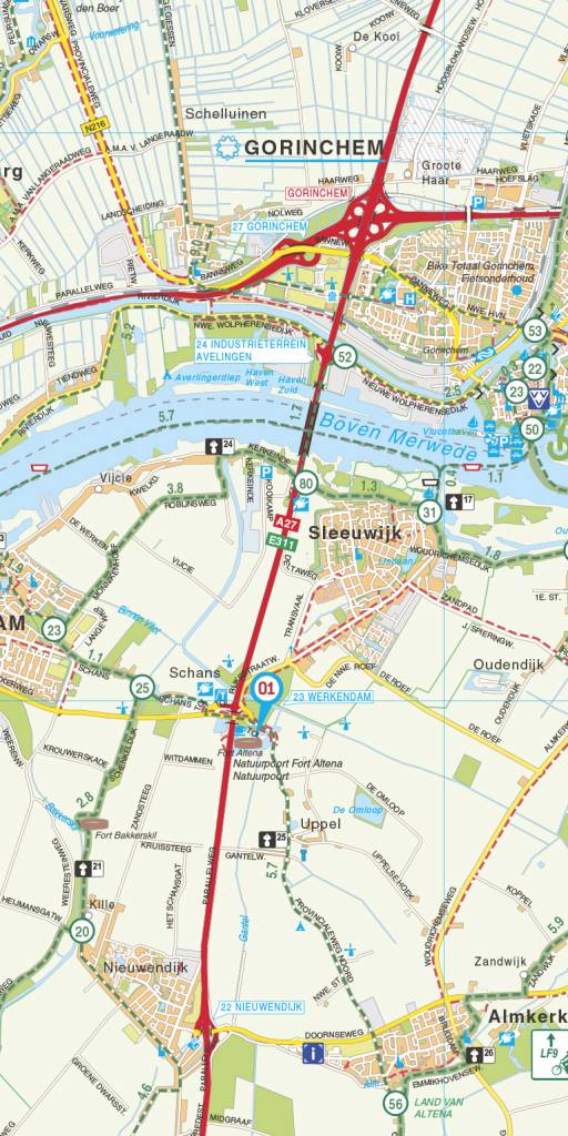 Alle fietspaden in Rivierenland. Uitgebreid met het Fietsknooppuntennetwerk en LF Routes.
