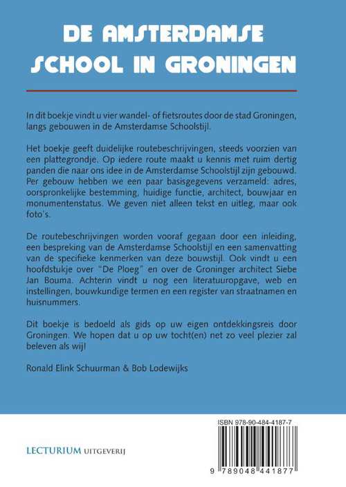 In dit boekje vindt u vier wandel- of fietsroutes door de stad Groningen, langs gebouwen in de Amsterdamse Schoolstijl.