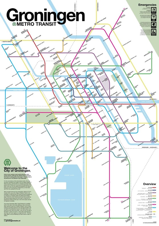 Wandkaart - Stadsplattegrond Groningen Metro Transit Map - Metrokaart | Victor van Werkhoven (0421641716189)