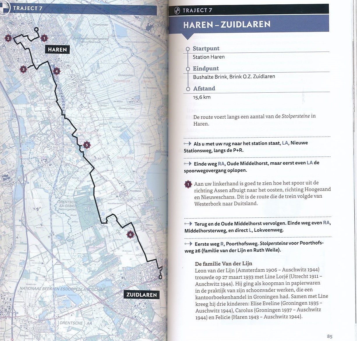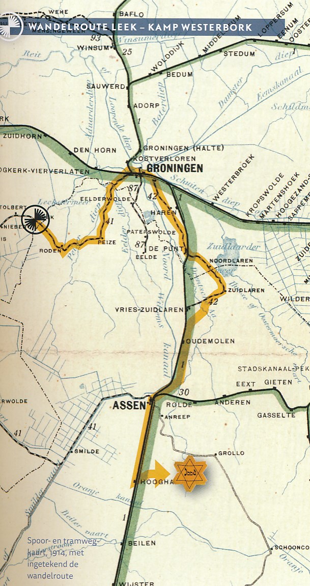 Een wandelroute van Leek naar Westerbork. Het is een blijvend eerbetoon aan de 61 uit Leek weggevoerde en omgebrachte joden tijdens de tweede wereldoorlog. Het is een route van 110 km in 10 etappes. In het routeboekje worden naast de routebeschrijving en kaartjes ook foto’s opgenomen van zoveel mogelijk weggevoerde joden en ook hun achtergrondgeschiedenis komt aan bod.