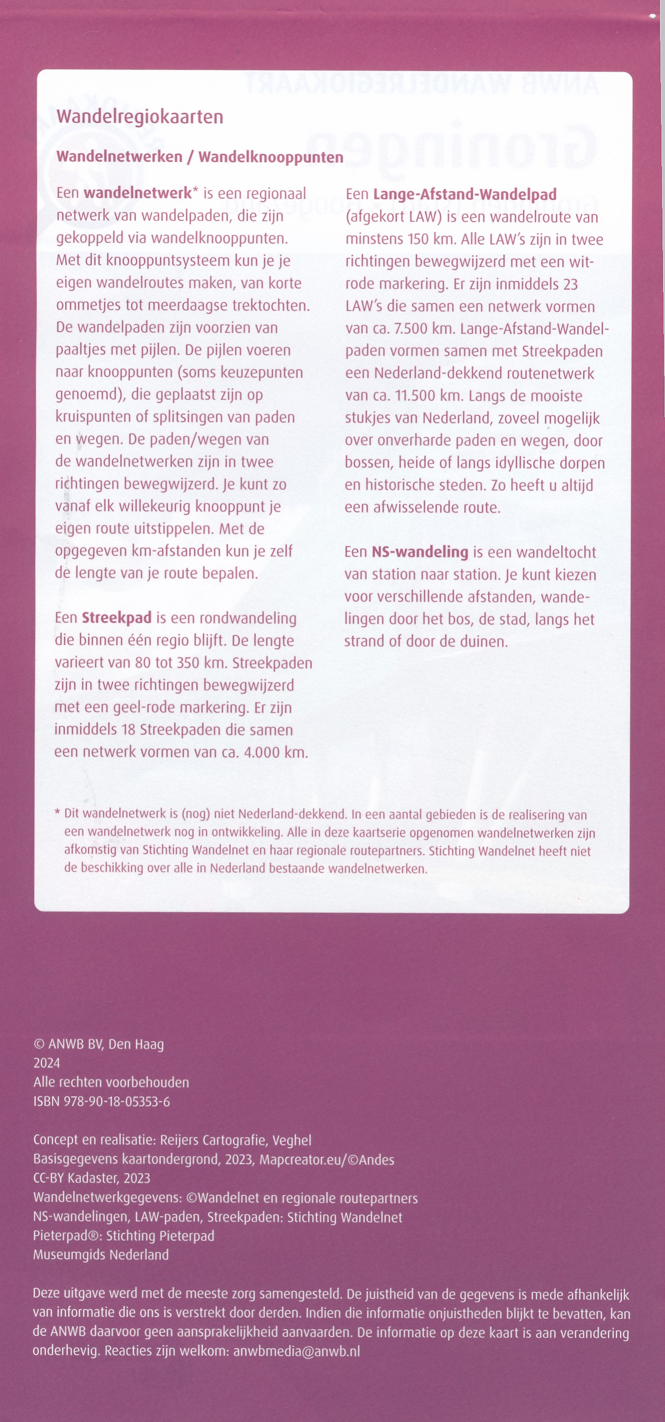 ANWB Wandelregiokaart Groningen Heerlijk wandelen door het Nederlandse landschap, daarbij is deze nieuwe ANWB Wandelkaart onmisbaar. Plan je eigen route en ontdek onze nationale parken, loop langs water en over dijken, door polders en weidelandschappen en pauzeer onderweg op een gezellig terras. Het kaartbeeld laat verschillende landelijke en regionale wandelnetwerken zien, LAW-paden (Lange-Afstand-Wandelpaden), streekpaden en knooppunten. De routes zijn voorzien van opstap- en parkeerplaatsen, horeca, musea en toeristische informatie. Zo bereid je jouw wandeling door Groningen tot in de puntjes voor met de ANWB Wandelregiokaart.