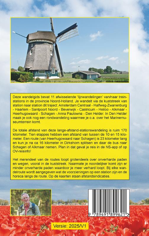 Je wandelt via de kuststreek van station naar station dit traject: Amsterdam Centraal – Halfweg-Zwanenburg – Haarlem – Santpoort Noord – Beverwijk – Castricum – Heiloo – Alkmaar – Heerhugowaard – Schagen – Anna Paulowna – Den Helder. In Den Helder maak je ook nog een rondwandeling waarmee je o.a. over het Marinemuseumterrein komt. De totale afstand van deze lange-afstand-stationswandeling is ruim 170 kilometer. Tien etappes hebben een afstand van tussen de 10 en 15 kilometer. Een route (van Heerhugowaard naar Schagen) is 23 kilometer lang en kun je na ca 16 kilometer in Dirkshorn splitsen en daar de bus naar Schagen of Alkmaar nemen. Plan in dat geval je reis in de NS-app of o pOV-reisinfo! Het merendeel van de routes loopt grotendeels over onverharde paden en wegen, vooral in de kuststreek. Naarmate je noordelijker komt zijn er minder onverharde paden waardoor je meer verhard loopt. Bij elke wandelroute wordt aangegeven wat de voorzieningen op een station zijn en de horeca langs de route. Op de kaarten staan afstandsindicaties.