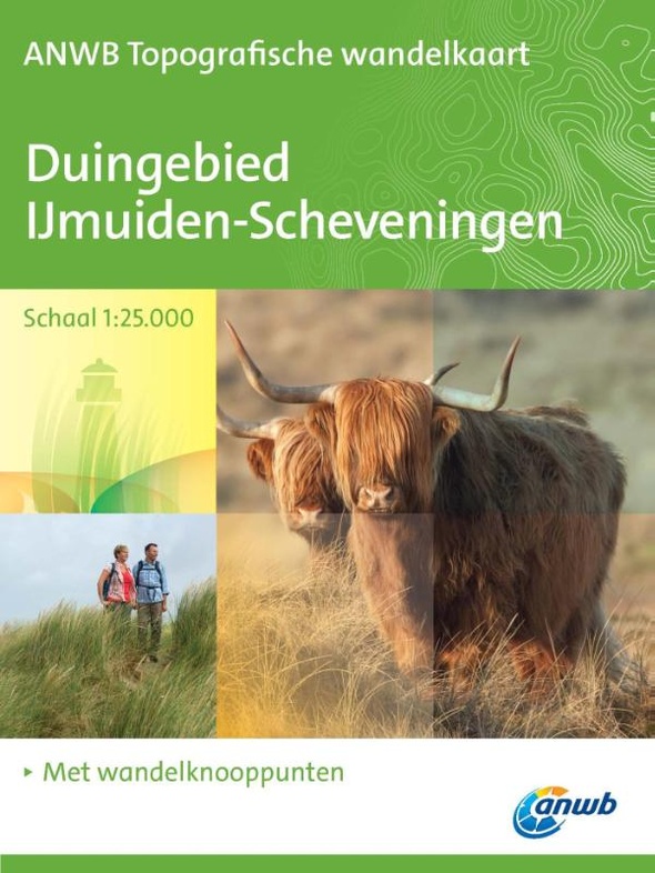 ANWB Topografische wandelkaart Duingebied Ijmuiden-Scheveningen hoort bij een nieuwe serie topografische wandelkaarten van 6 populaire wandelgebieden in Nederland.