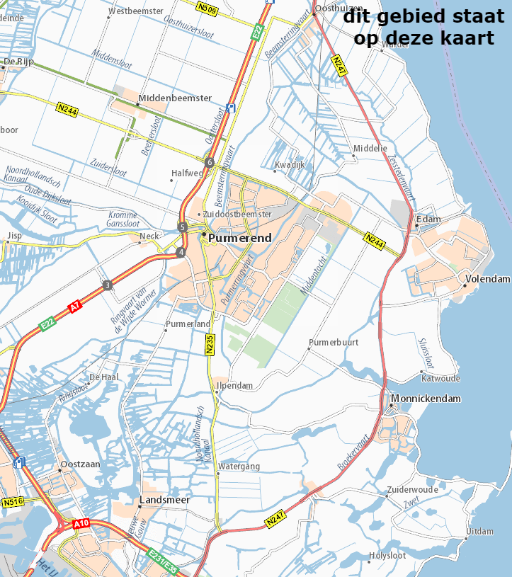 Gedetailleerde kaart met daarop alle straten, bospaden en fietspaden. De kaart bevat vele wandelroutes van onder andere natuurmonumenten en staatsbosbeheer, waaronder de bekende paaltjesroutes. Ook alle andere toeristisch belangrijke punten staan nadrukkelijk weergegeven: campings, restaurants, zwembaden .. noem maar op! Het gebied is zo uitgesneden dat de titel prima de lading dekt: de ideale wandelkaart en fietskaart voor de vakantie. Plaatsen: Graft - De Rijp - Middenbeemster - Jisp - Purmerend -Edam - Volendam - Broek in Waterland - Monnickendam - Amsterdam - Landsmeer - Zaandam - Ransdorp - Durgerdam - Zunderdorp