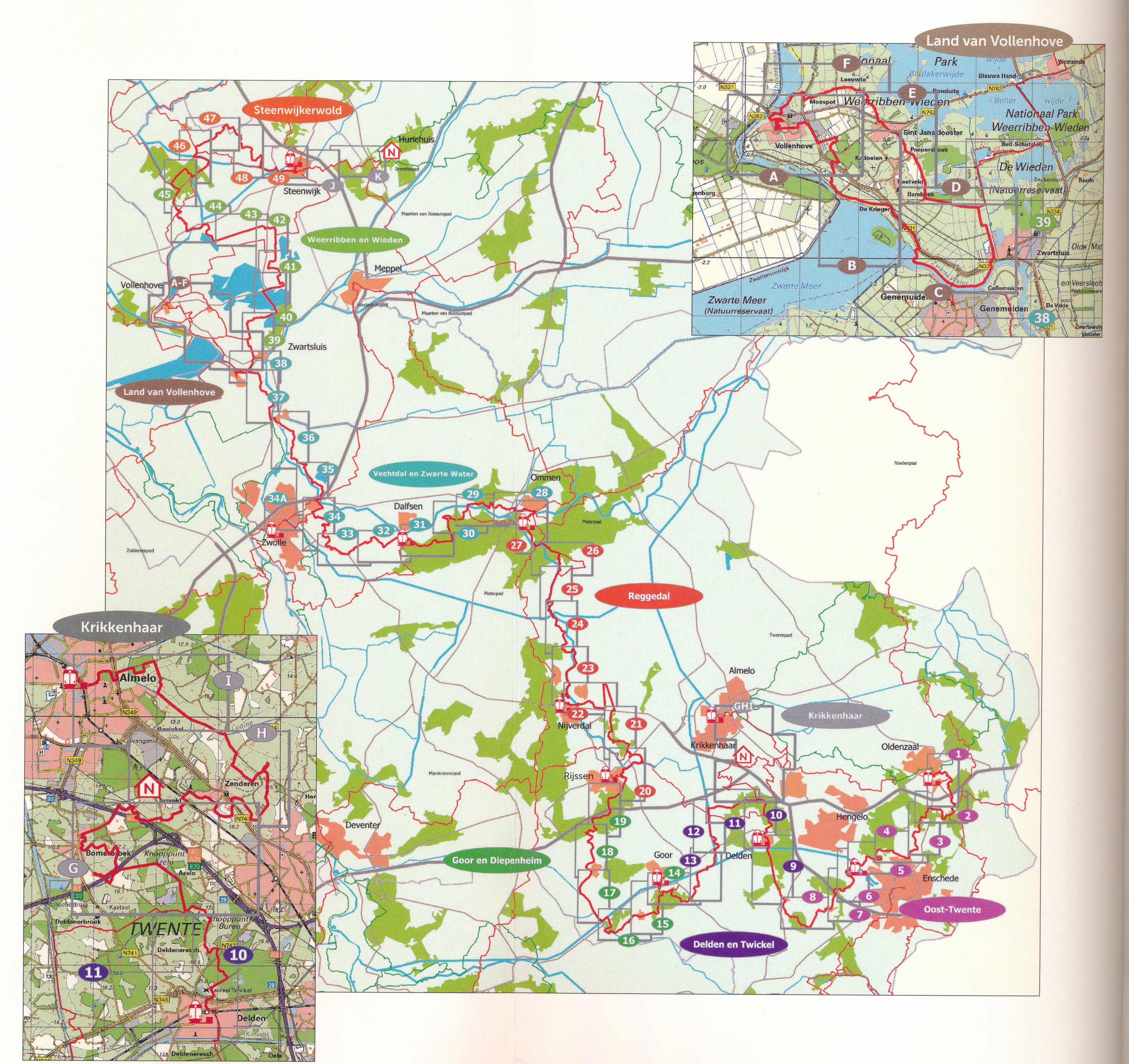 Deze volledig nieuwe route slingert dwars door Overijssel, van Twente via het dal van de Regge, de Vecht en het Zwarte Water naar de Wieden en de Weerribben. Vanwege het afwisselende en vaak kleinschalige landschap dat door boeren en landheren gekneed is, staat Overijssel ook wel bekend als de 'Tuin van Nederland'. Onderweg worden weelderige landgoederen, kronkelende rivieren, glooiende heuvels en bolle essen gepasseerd, maar ook weerbarstige veenmoerassen en intieme hooilanden met houtwallen en singels. De vele historische stadjes en dorpen maken de afwisseling compleet.