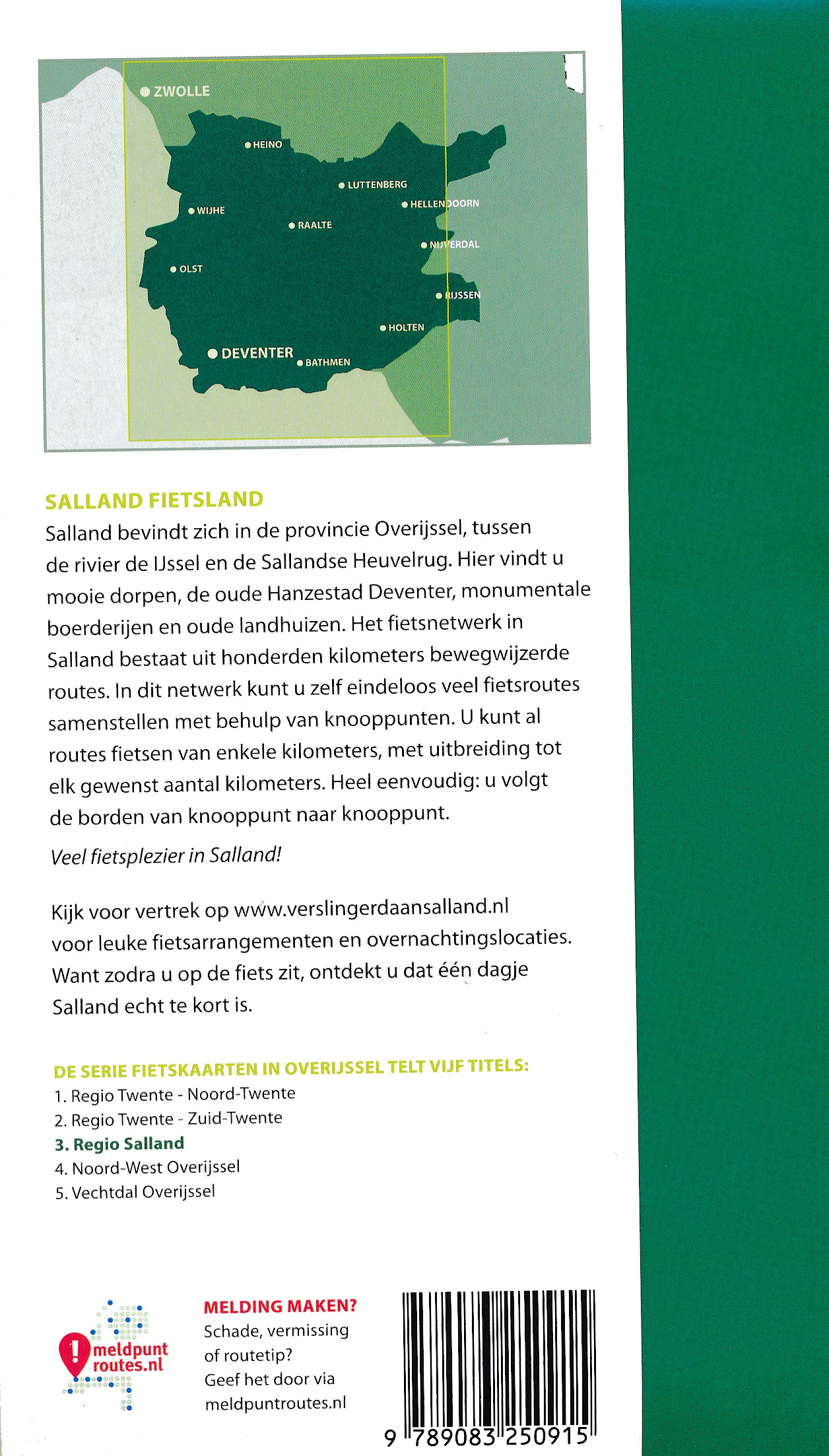 Duidelijke kaart met alle fietsknooppunten en fietsnetwerk routes n Salland. Heel duidelijk lesbaar, gedrukt op scheur- en watervast papier.