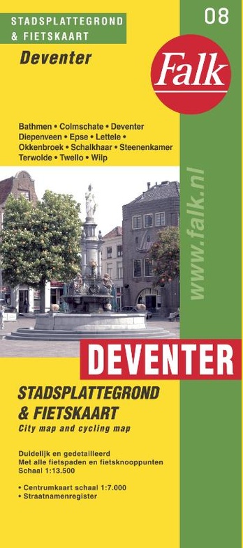 De stadsplattegrond van Deventer is regionaal uitgebreid met Bathmen, Colmschate, Diepenveen, Epse, Lettele, Okkenbroek, Schalkhaar, Steenenkamer, Terwolde, Twello en Wilp. Van al deze plaatsen is het straatnamenregister weergegeven op de achterzijde van de kaart. De extra bijgeleverde detailkaart van het centrum van Deventer geeft je nog meer overzicht als je het stadscentrum lopend wilt bezoeken.