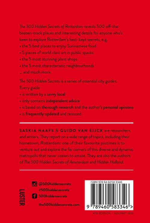 About the authors: Guido van Eijck and Saskia Naafs are journalists with a special love for Rotterdam. They write for national newspapers Het Parool and De Volkskrant and the weekly magazine De Groene Amsterdammer. They are the authors of Hidden Nederland, Hidden Holland & The 500 Hidden Secrets of Amsterdam.
