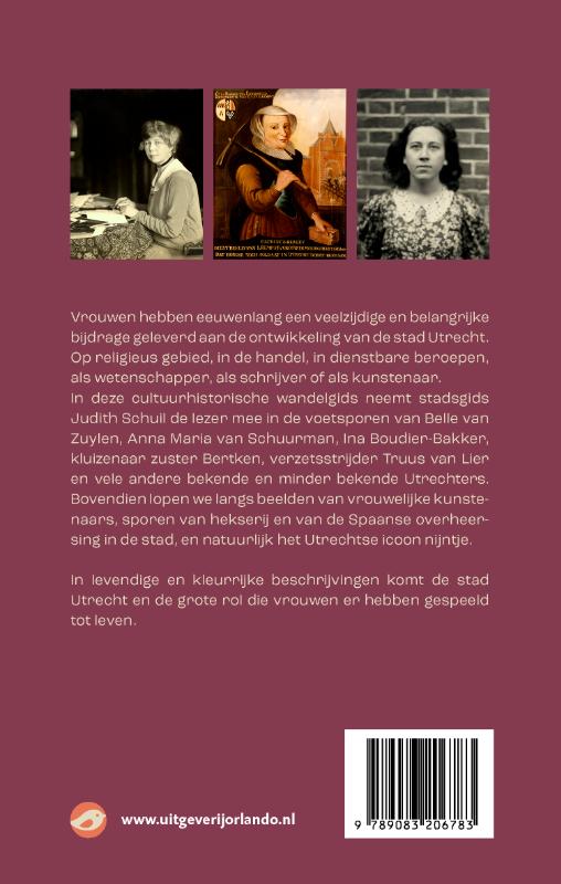 Vrouwen hebben eeuwenlang een veelzijdige en belangrijke bijdrage geleverd aan de ontwikkeling van de stad Utrecht. Op religieus gebied, in de handel, in dienstbare beroepen, als wetenschapper, als schrijver of als kunstenaar. In deze cultuurhistorische wandelgids neemt stadsgids Judith Schuil de lezer mee in de voetsporen van Belle van Zuylen, Anna Maria van Schuurman, Ina Boudier-Bakker, kluizenaar zuster Bertken, verzetsstrijder Truus van Lier en vele andere bekende en minder bekende Utrechters. Bovendien lopen we langs beelden van vrouwelijke kunstenaars, sporen van hekserij in de stad en van de Spaanse overheersing, en natuurlijk het Utrechtse icoon nijntje. In levendige en kleurrijke beschrijvingen komt de stad Utrecht en de grote rol die vrouwen er hebben gespeeld tot leven.