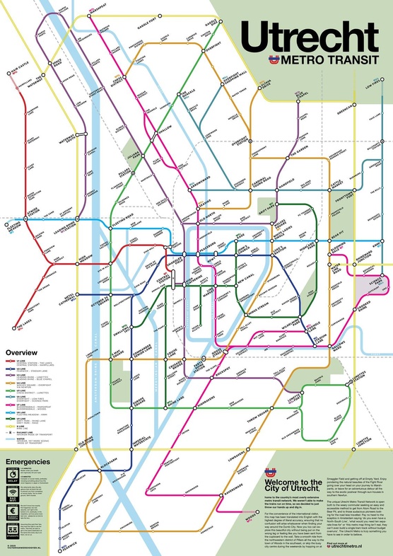 Wandkaart - Stadsplattegrond Utrecht Metrokaart - Metro Transit Map | Victor van Werkhoven (0422406442596)