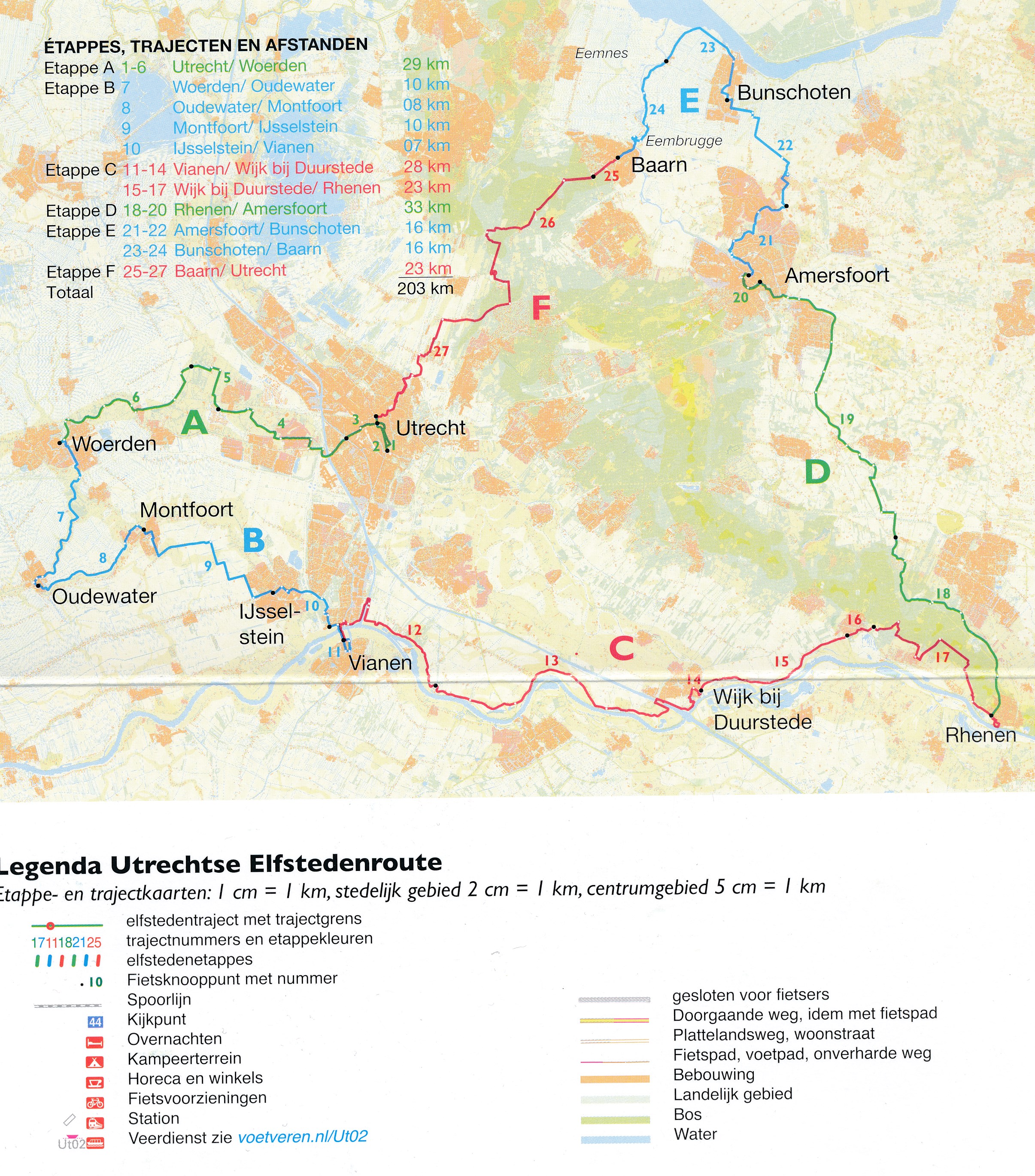 Een fietstocht langs weilanden, akkers, fruitboomgaarden, kastelen, buitenplaatsen, oude boerderijen, door bossen en over zandheuvels, maar vooral door middeleeuwse steden en langs oude rivieren, kanalen en weteringen. Vermelding van kijkpunten, musea, overnachtingsadressen, horeca, winkels en fietsvoorzieningen.