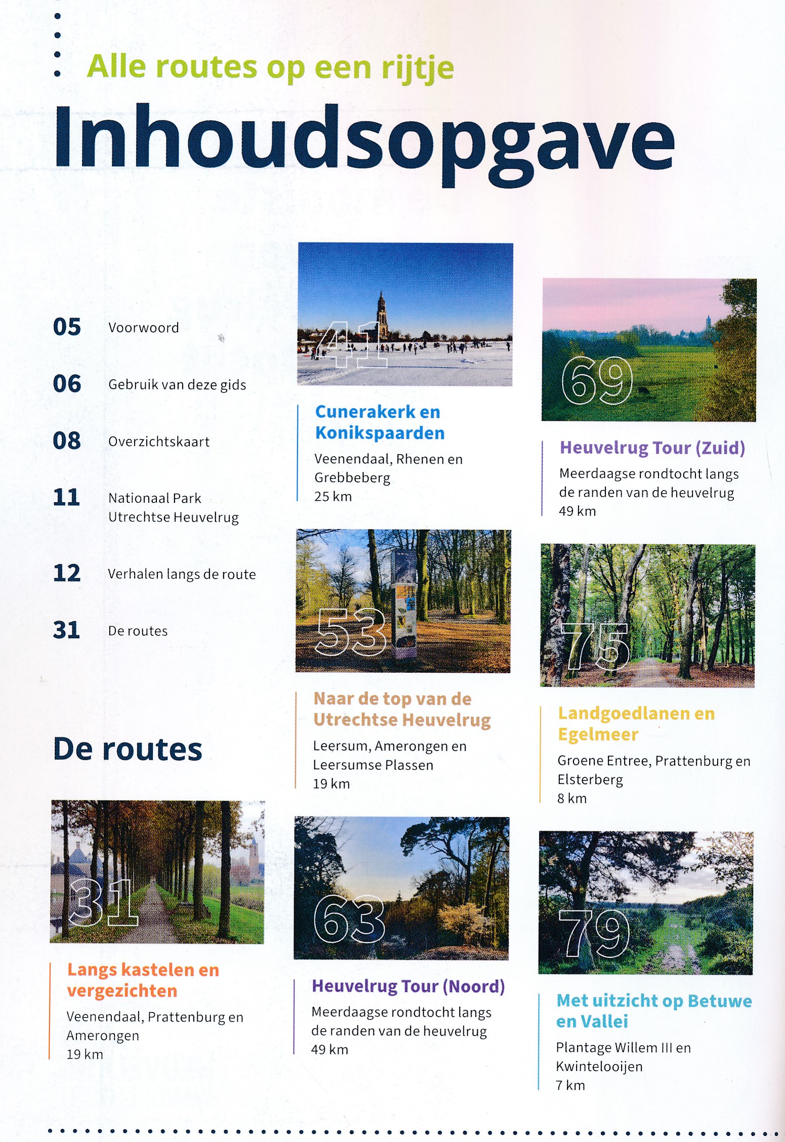 De wandelgids bevat zeven routes, tussen de 7 en 49 kilometer lang, tussen Veenendaal, Rhenen, Amerongen en Leersum. Alle routes zijn duidelijk beschreven, voorzien van kaartjes, praktische informatie en een link naar de route op smartphone of gps. Met prachtige foto’s en verhalen langs de route, over ruim veertig bezienswaardigheden onderweg.