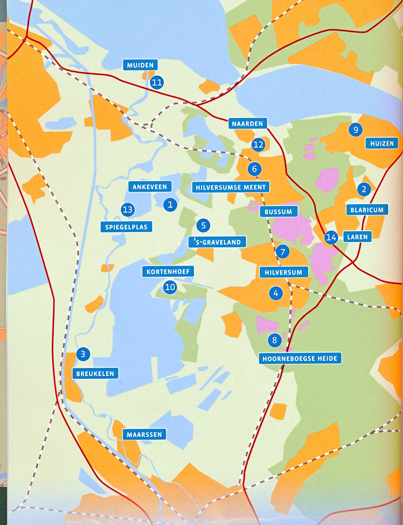 De auteurs wijzen je de weg over uitgestrekte heidevelden met grazende schapen en koeien. Ze sturen je langs fraaie buitenverblijven op statige landgoederen. Ze leiden je door bossen, langs plassen, moerassen en riviertjes terwijl je kunt genieten van weidse uitzichten. Maar ze nemen je ook mee naar de stad en maken je deelgenoot van de bijzondere bouwkundige hoogstandjes van Dudok. En ze doen de oude dorpskern van Laren, Huizen en vestingstadje Naarden aan. De inwendige mens wordt niet vergeten, want bij elke route zijn meerdere horecagelegenheden opgenomen. Naast heldere kaartjes en een degelijke routebeschrijving wijzen de paaltjes van het Wandelnetwerk Gooi & Vecht je de weg.