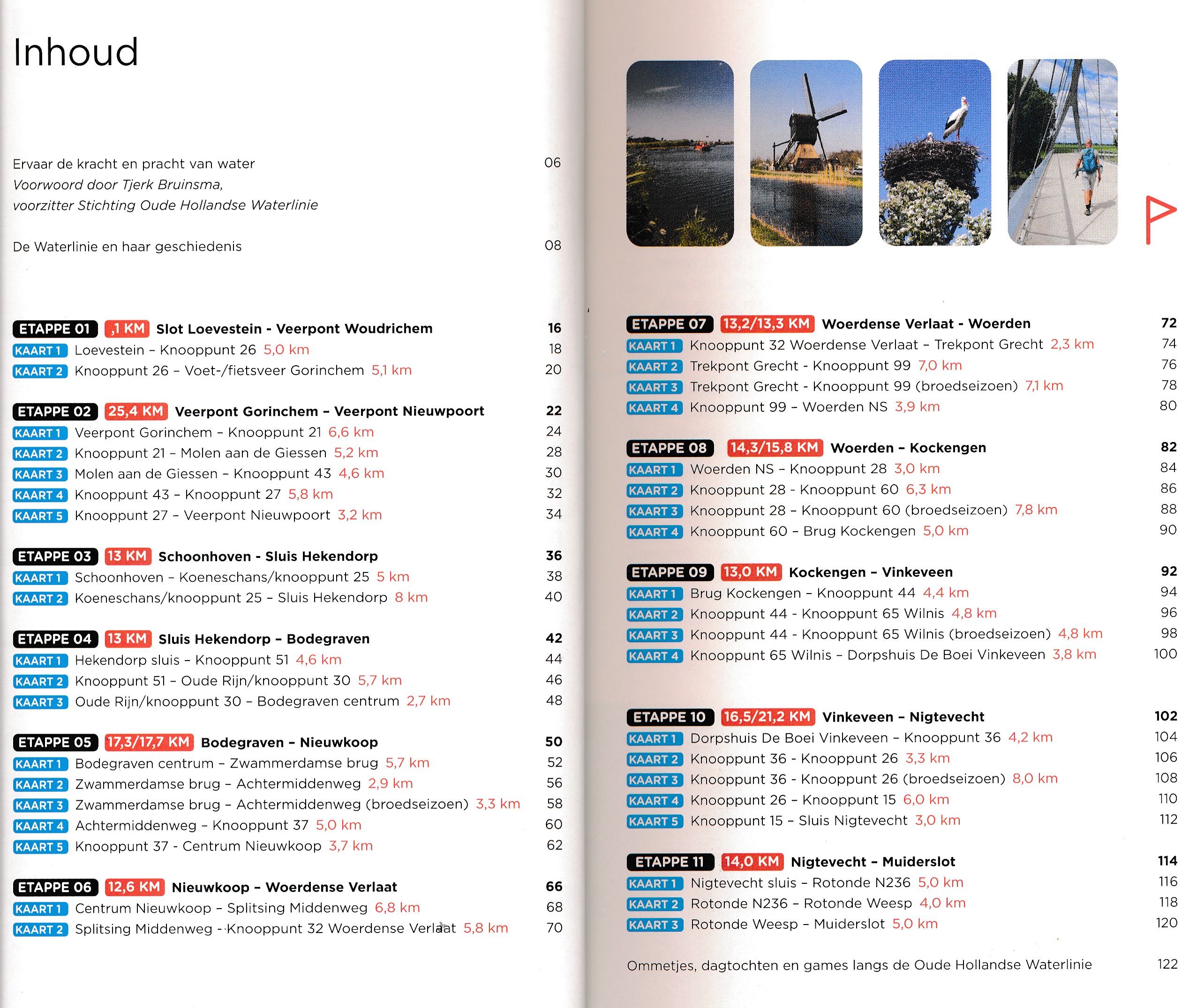Wandelroute van 170 km. Deze wandelgids beschrijft de Oude Hollandse Waterlinie in 2 richtingen, ook de markeringen zijn allebei de richtingen in het veld te vinden. De gids is duidelijk en helder in gebruik: goede kaarten en een uitgebreide beschrijving van de route. De route verbindt Slot Loevestiein met het Muiderslot.