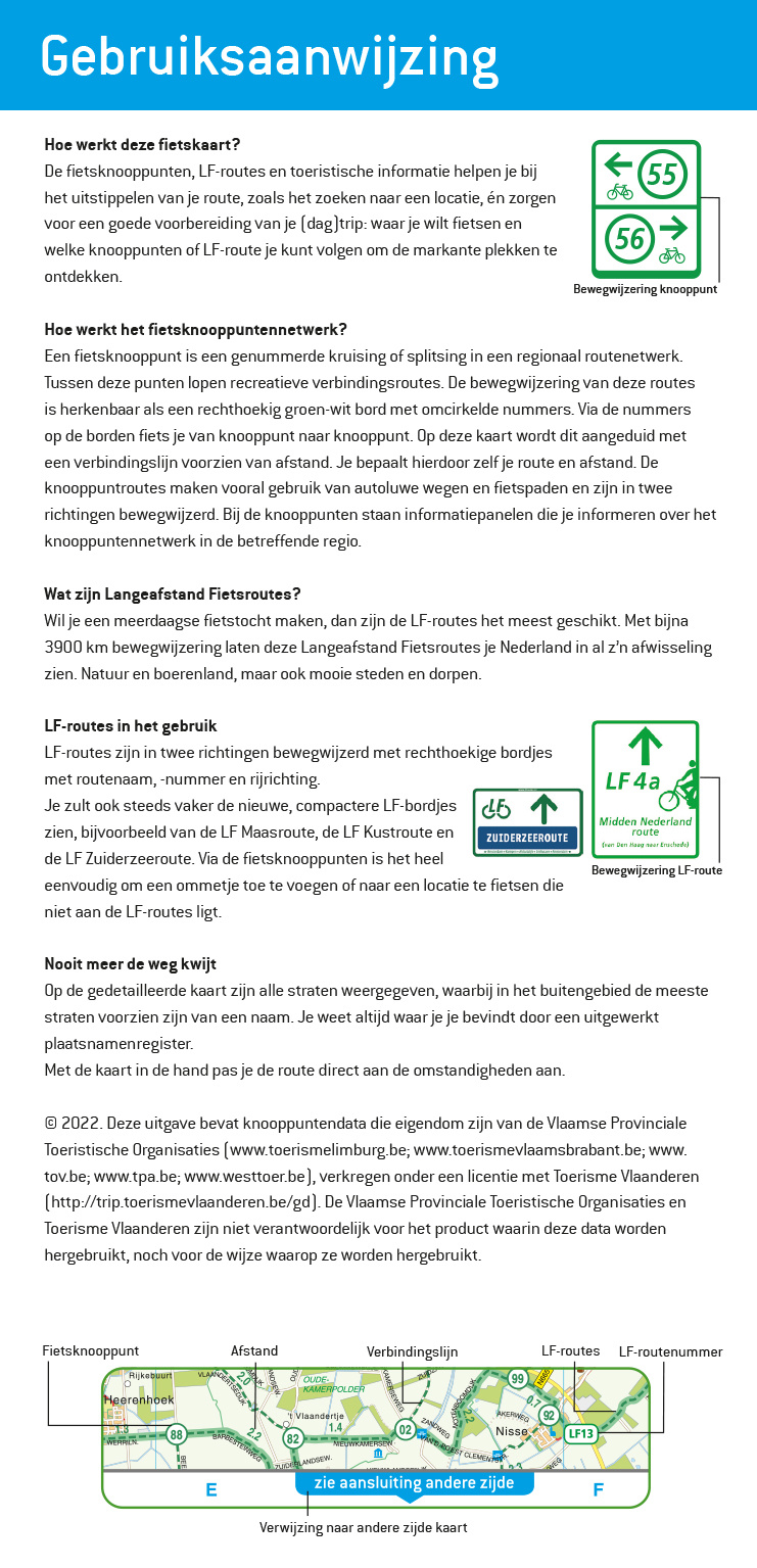 Voorzien van een plaatsnamenregister en benaming van de wegen buiten de bebouwde kom. Waar reeds aangebracht zijn de knooppunten op de kaart weergegeven.