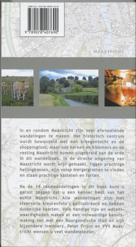Na de 14 wandelingen in dit boek kunt u gerust zeggen dat u een kenner bent van het echte Maastricht. Alle wandelingen zijn met sfeervolle kleurenfoto’s geïllustreerd en hebben duidelijke kaarten. Vele handige tips en wetenswaardigheden maken er een volwaardige kennismaking van met een Bourgondische stad en zijn bijzondere inwoners. Peter Frijns en VVV Maastricht wensen u veel wandelplezier.