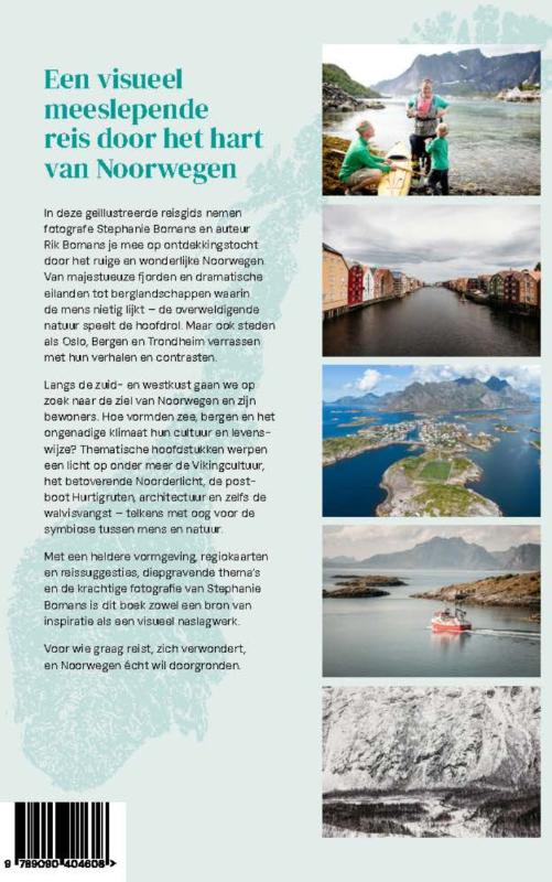 In deze geïllustreerde reisgids nemen fotografe Stephanie Bomans en auteur Rik Bomans je mee op ontdekkingstocht door het ruige en wonderlijke Noorwegen. Van majestueuze fjorden en dramatische eilanden tot berglandschappen waarin de mens klein lijkt – de overweldigende natuur speelt de hoofdrol. Maar ook steden als Oslo, Bergen en Trondheim verrassen met hun verhalen en contrasten. Langs de zuid- en westkust gaan we op zoek naar de ziel van Noorwegen en zijn bewoners. Wat drijft hen? Hoe vormden zee, bergen en het ongenadige klimaat hun cultuur en levenswijze? Thematische hoofdstukken werpen een licht op onder meer de Vikingcultuur, het betoverende Noorderlicht, de postboot Hurtigruten, architectuur en zelfs de walvisvangst – telkens met oog voor de symbiose tussen mens en natuur. Met een heldere lay-out, regiokaarten en reissuggesties, diepgravende thema’s en de krachtige fotografie van Stephanie Bomans is dit boek zowel bron van inspiratie als visueel naslagwerk. Voor wie graag reist, zich verwondert, en Noorwegen écht wil doorgronden.