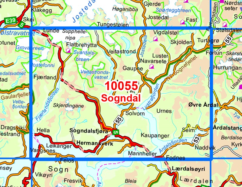 - Wandelkaart - Topografische kaart 10055 Norge Serien Sogndal | Nordeca