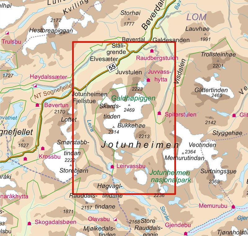 - Wandelkaart 2655 Turkart Galdhøpiggen | Nordeca