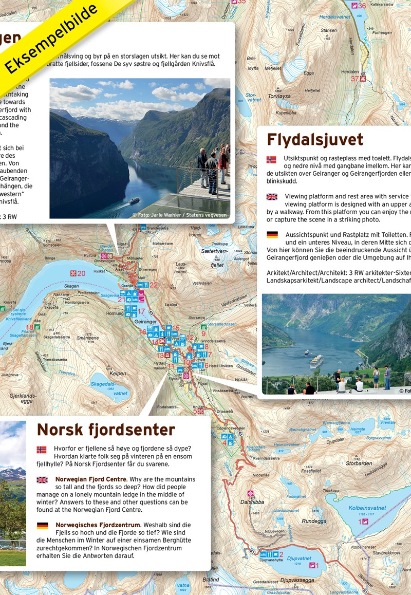 Fakta: - Eksklusiv innpakning - Unikt innhold - Flotte og illustrative bilder - Tre språk(norsk, engelsk og tysk) - Bilder og informasjon rett i kartet - Egne postkort medfølger