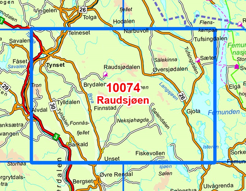 Wandelkaart - Topografische kaart 10074 Norge Serien Raudsjøen | Nordeca (7071940100740)