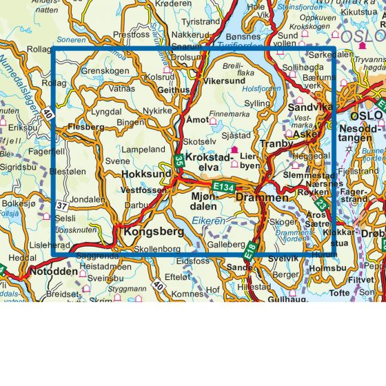 De kaart omvat: Finnemarka - Vestmarka - Kjekstad Marka - Hokksund - Kongsberg - HoltefjellTopo 3000 is a detailed map covering over 3000 km2. Drammensmarka is a popular recreation area. Here you will find many small and large bodies of water with good fishing and swimming opportunities. Good starting points for hiking are Eiksetra tourist hut, Røyne, Landfalltjernet, Engersetra and Sponevollen. In winter, there is also a well-developed network of ski slopes. Here you will find tours such as: Cultural heritage walk along Krokstadbekken to Årbogen 4.8 km, Urdevann-Landfalltjern hike 11.8 km, Gjevlekollen-Knausen 16 km. Example of cabins: Eiksetra, Tverken (served), Garsjøkoia, Lunnaashytta, Svarvestolen (unserved).