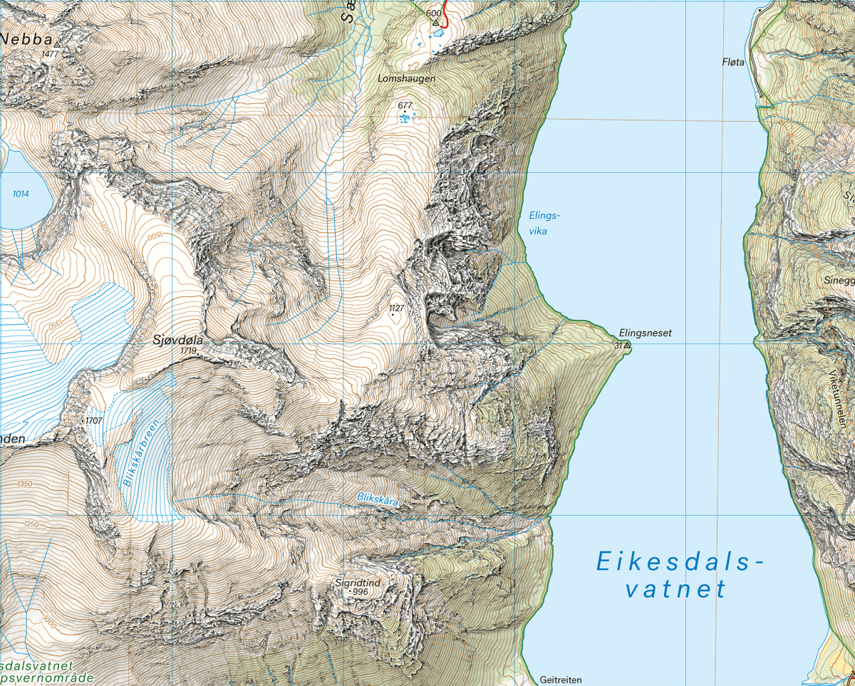Uitgever: Dit is een van de twee unieke kaarten met een schat aan details die nog nooit eerder zijn gezien van het gebied rond Romsdalen. De terreininformatie op de kaart is gebaseerd op laserscanning vanuit de lucht. Berghellingen, beken, gletsjers en andere natuurlijke elementen worden veel gedetailleerder weergegeven dan op eerdere kaarten. De kaart bevat ook meer routes dan welke voorgaande kaart dan ook over hetzelfde gebied.