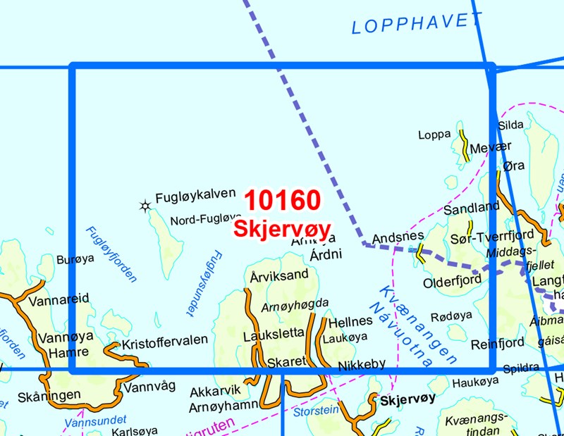 - Wandelkaart - Topografische kaart 10160 Norge Serien Skjervøy | Nordeca