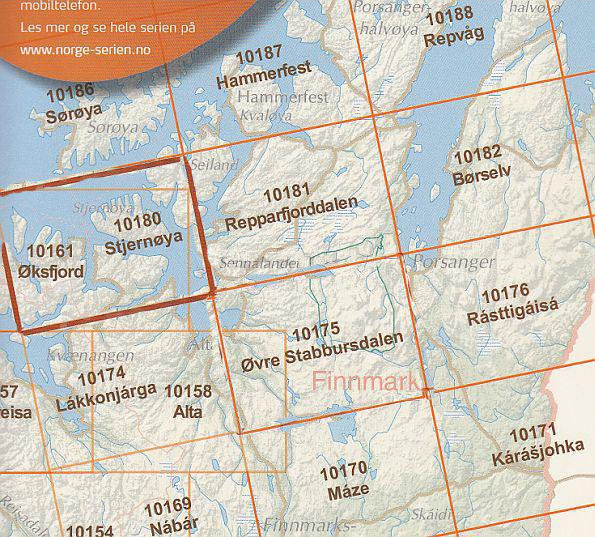 Overzicht topografische kaarten Noorwegen Noordkaap - 1:50.000 Norge Serien