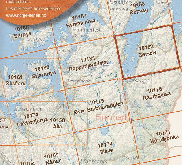 Overzicht topografische kaarten Noorwegen Noordkaap - 1:50.000 Norge Serien