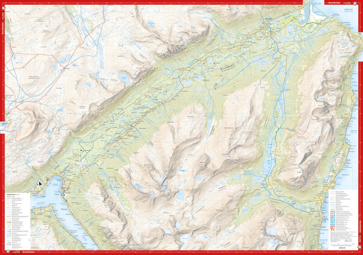 Uitgever: Dit is een van de twee unieke kaarten met een schat aan details die nog nooit eerder zijn gezien van het gebied rond Tromsø. De terreininformatie op de kaart is gebaseerd op laserscanning vanuit de lucht. Berghellingen, beken, gletsjers en andere natuurlijke elementen worden met deze technologie veel gedetailleerder weergegeven.