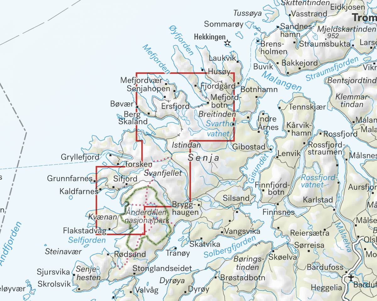 Senjahopen, Husfjellet, Breitinden, Helvetesdalen, Istindan, Ånderdalen nasjonalpark-vest, Svanfjellet, Kaperdalen