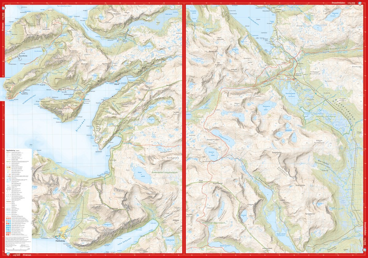Uitgever: Dit is een kaart met een schat aan details die je nog nooit eerder boven Senja hebt gezien. De terreininformatie op de kaart is gebaseerd op laserscanning vanuit de lucht. Berghellingen, rietparcours, toppers en andere natuurelementen worden met deze technologie veel gedetailleerder in beeld gebracht.