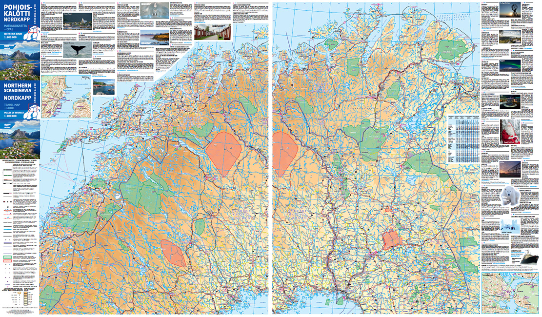 De wegenkaart heeft een schaal van 1:800.000 en bestrijkt de noordelijke delen van Finland, Zweden en Noorwegen van de Lofoten-eilanden tot aan de Russische grens. De wegenkaart dient ook als reisgids, aangezien de kaart de belangrijkste toeristische bestemmingen van elk land weergeeft met tekst en afbeeldingen. De teksten van in totaal 30 objecten zijn zowel in het Fins als in het Engels en de objecten zijn gemarkeerd op de kaart.